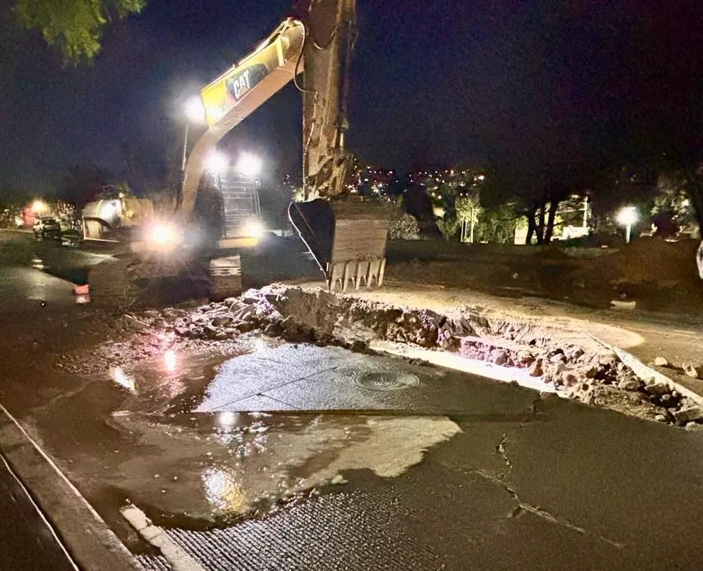 La dependencia explicó que derivado de la tormenta atípica registrada el pasado domingo 20 de abril, se presentó un reblandecimiento de la tierra que, aunado al tránsito constante de vehículos pesados en la zona, agravó las condiciones del suelo, lo que generó daños mayores a la red de agua potable que cruza por esta vialidad.