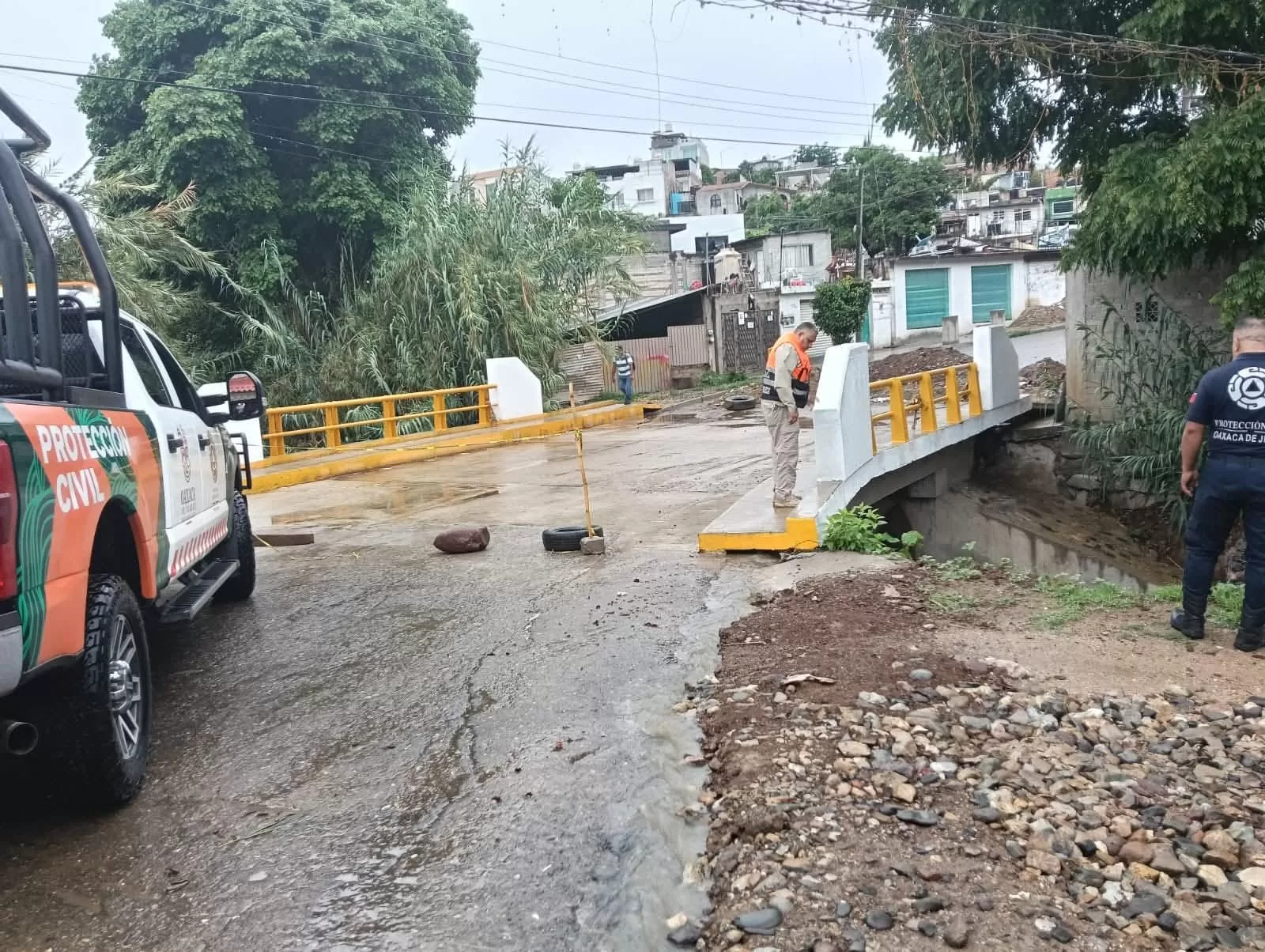Oaxaca de Juárez, Oax. 19 de junio de 2025.–Por instrucciones del presidente municipal Ray Chagoya, la Dirección de Protección Civil de Oaxaca de Juárez mantiene un monitoreo constante de los ríos y arroyos de la ciudad, como parte del protocolo preventivo ante los remanentes del huracán Erick.