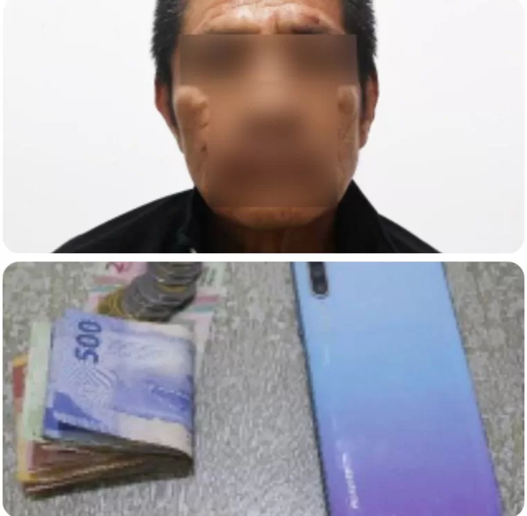 En la inspección precautoria, al sujeto le hallaron el teléfono de la víctima y la cantidad de 3 mil 982 pesos en billetes y monedas, producto del robo.