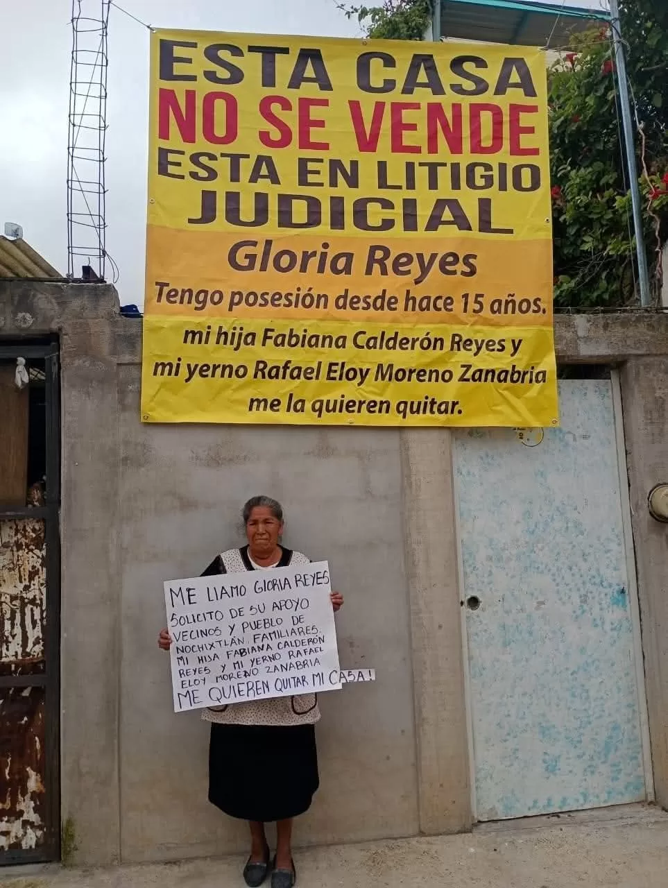 A través de una denuncia ciudadana, la señora Gloria Reyes, adulta mayor y habitante de escasos recursos del municipio de Asunción Nochixtlán, hizo un llamado urgente a las autoridades y a la sociedad civil para que le brinden apoyo legal y protección ante lo que describe como un intento de despojo de su vivienda, por parte de su propia hija y su yerno.