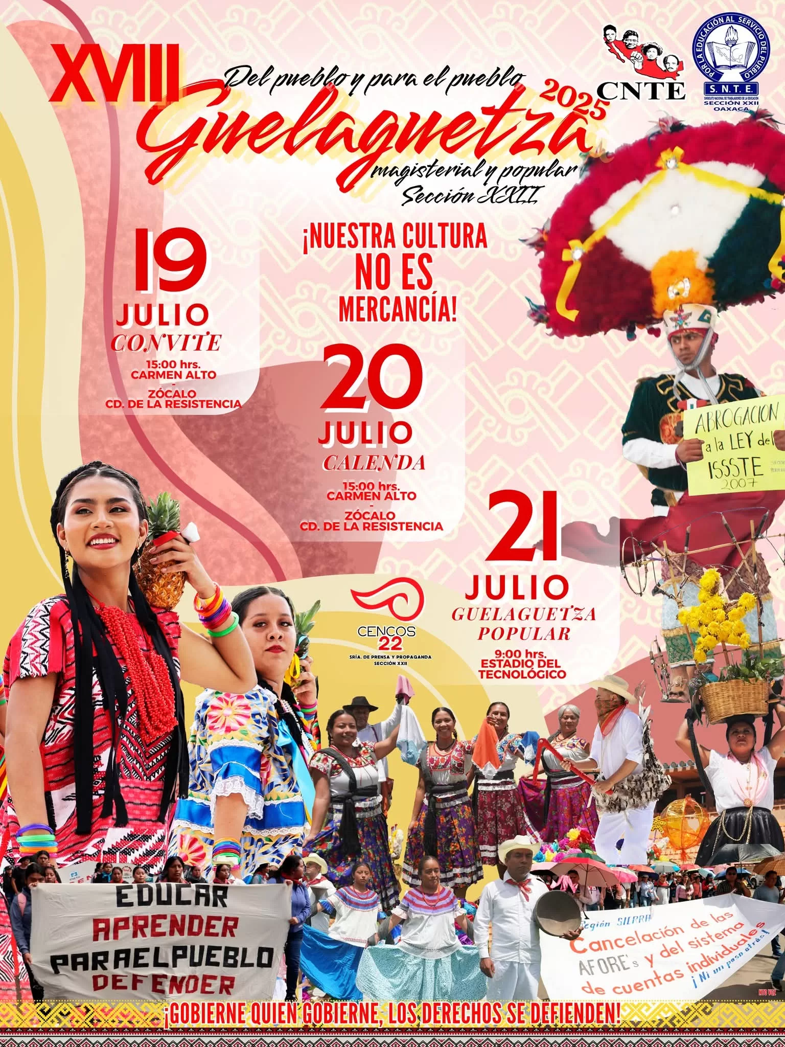 Como cada año, la Sección 22 del magisterio oaxaqueño, integrante de la Coordinadora Nacional de Trabajadores de la Educación (CNTE), realizará la Guelaguetza Magisterial y Popular 2025, una celebración alternativa que reivindica el sentido comunitario, político y cultural de las tradiciones de los pueblos originarios de Oaxaca.