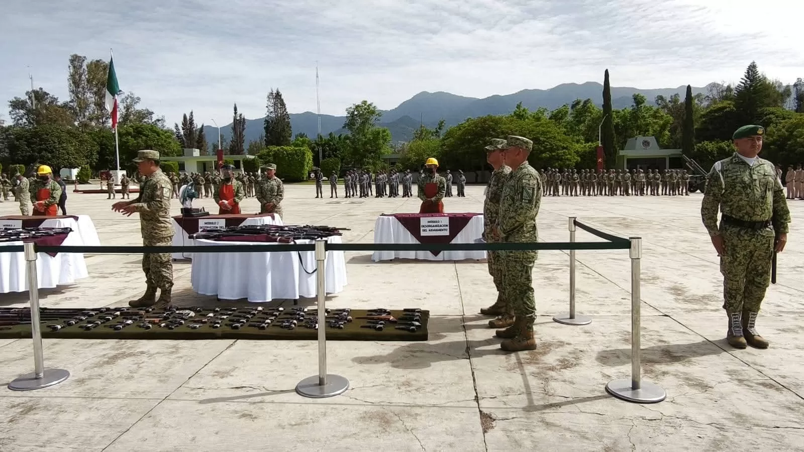 Durante el acto, llevado a cabo en las instalaciones del 6/o. Regimiento de Artillería, se inutilizaron 31 armas largas, 75 armas cortas y 2,444 cartuchos y accesorios que habían sido asegurados en distintas operaciones.