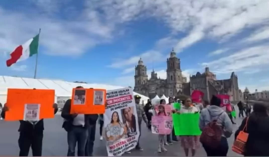 Con pancartas y consignas, pobladores de Acatlán de Pérez Figueroa, Oaxaca, se manifestaron este lunes frente a Palacio Nacional para exigir la liberación de Amayrani Aguilar y Griselda Trujillo, madre e hija detenidas desde hace dos meses en el estado de Tabasco, acusadas de homicidio tras realizar una llamada de emergencia.