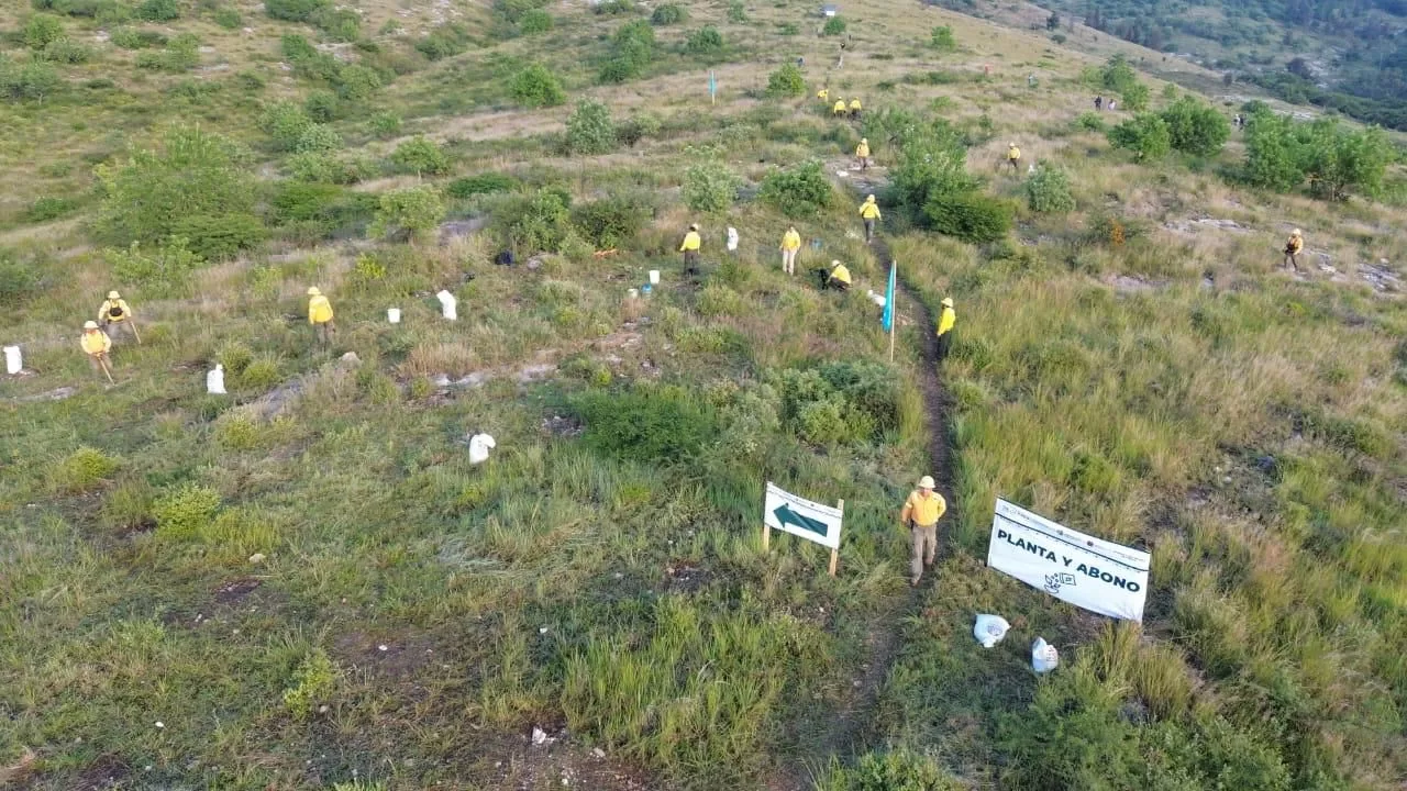 Oaxaca de Juárez, Oax., 10 de agosto de 2025.- Por tercer año consecutivo, el Gobernador Salomón Jara Cruz encabezó el Mega Tequio de Reforestación en Monte Albán, que tiene como meta la intervención de 500 hectáreas en diversas fases, a fin de cuidar y preservar el medio ambiente.