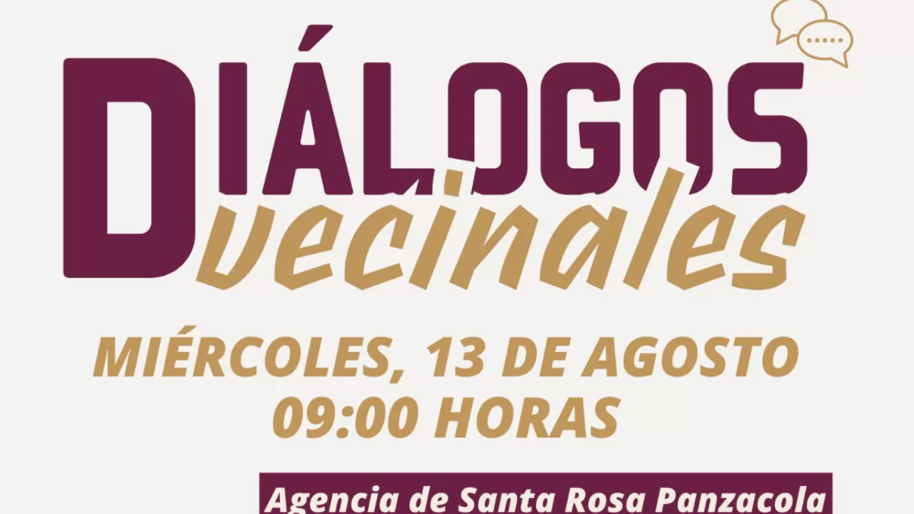 Oaxaca de Juárez, Oax., 11 de agosto de 2025.– El Ayuntamiento de Oaxaca de Juárez invita a las vecinas y vecinos de la agencia municipal de Santa Rosa Panzacola a participar en los Diálogos Vecinales, que se llevarán a cabo este miércoles 13 de agosto a las 9:00 horas, en la cancha del Fraccionamiento Los Cedros, un espacio de atención directa que encabeza el presidente municipal Ray Chagoya para escuchar de primera mano las necesidades y propuestas de la ciudadanía.