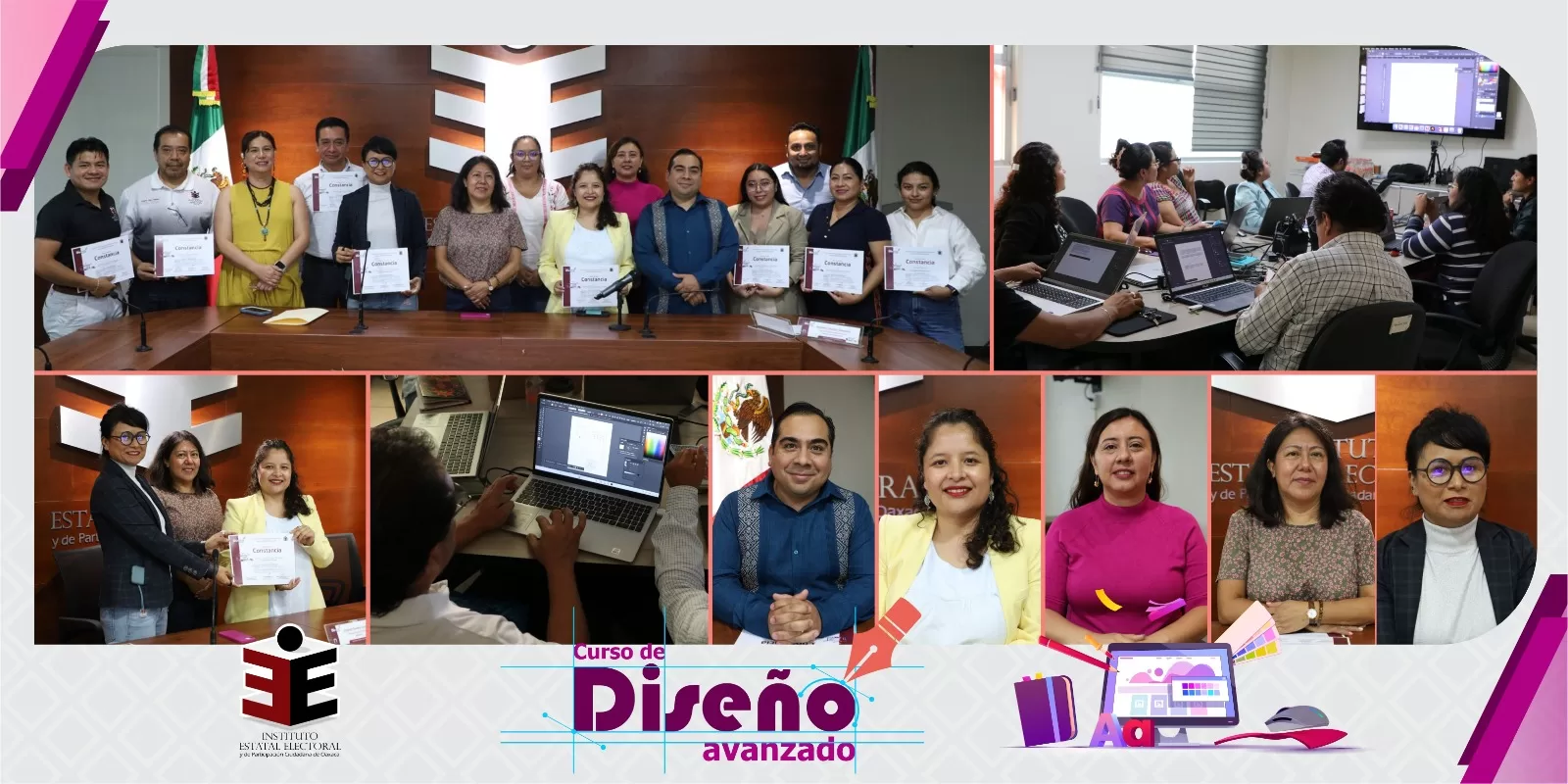 Este miércoles, personal del Instituto Estatal Electoral y de Participación Ciudadana de Oaxaca (IEEPCO) concluyó el curso de actualización en diseño gráfico, impulsado por la Comisión Temporal de Comunicación, presidida por la Consejera Electoral Zaira Alhelí Hipólito López.