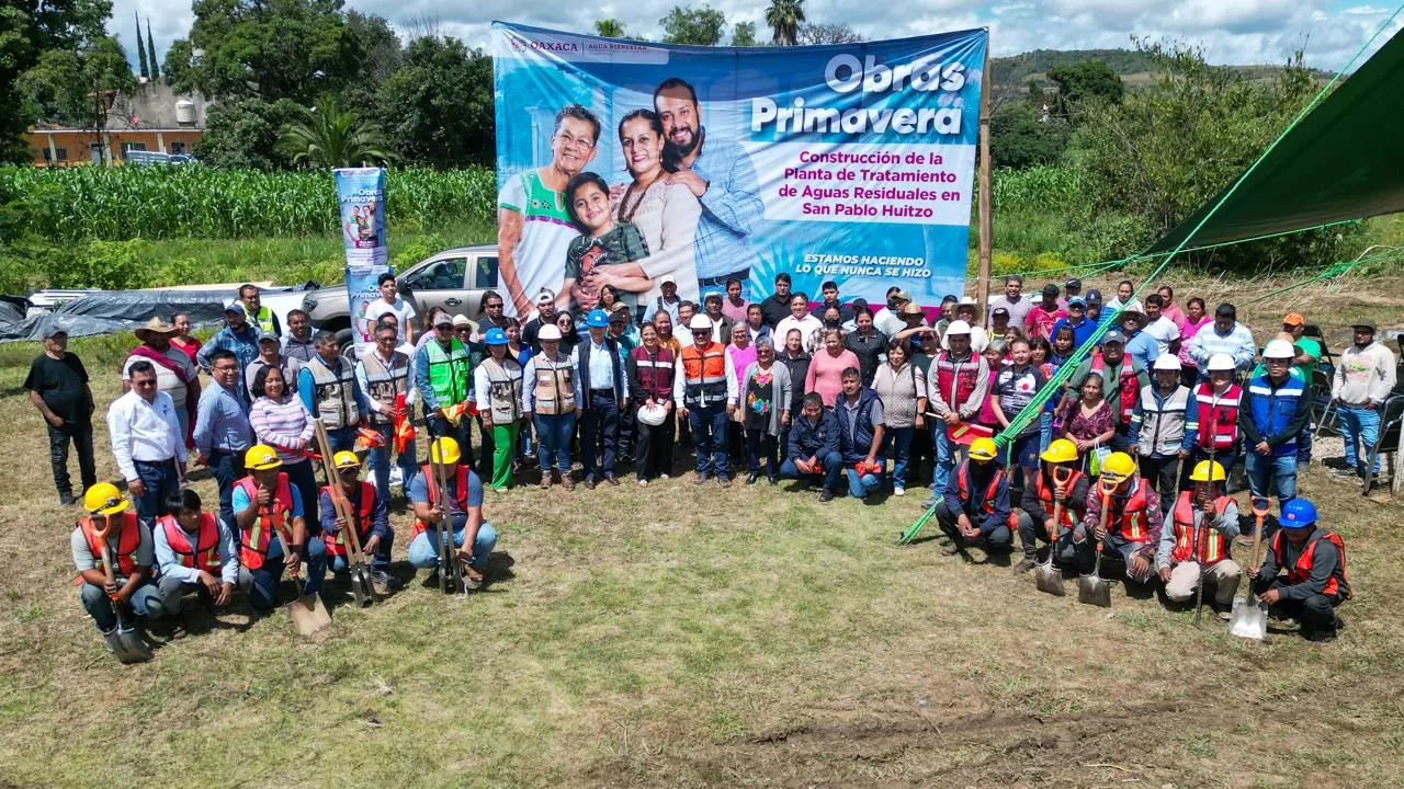 San Pablo Huitzo, Oax., 24 de septiembre de 2025.- Con la suma de esfuerzos entre el Gobierno de Oaxaca y la Federación, arrancó la construcción de la Planta de Tratamiento de Aguas Residuales de San Pablo Huitzo.