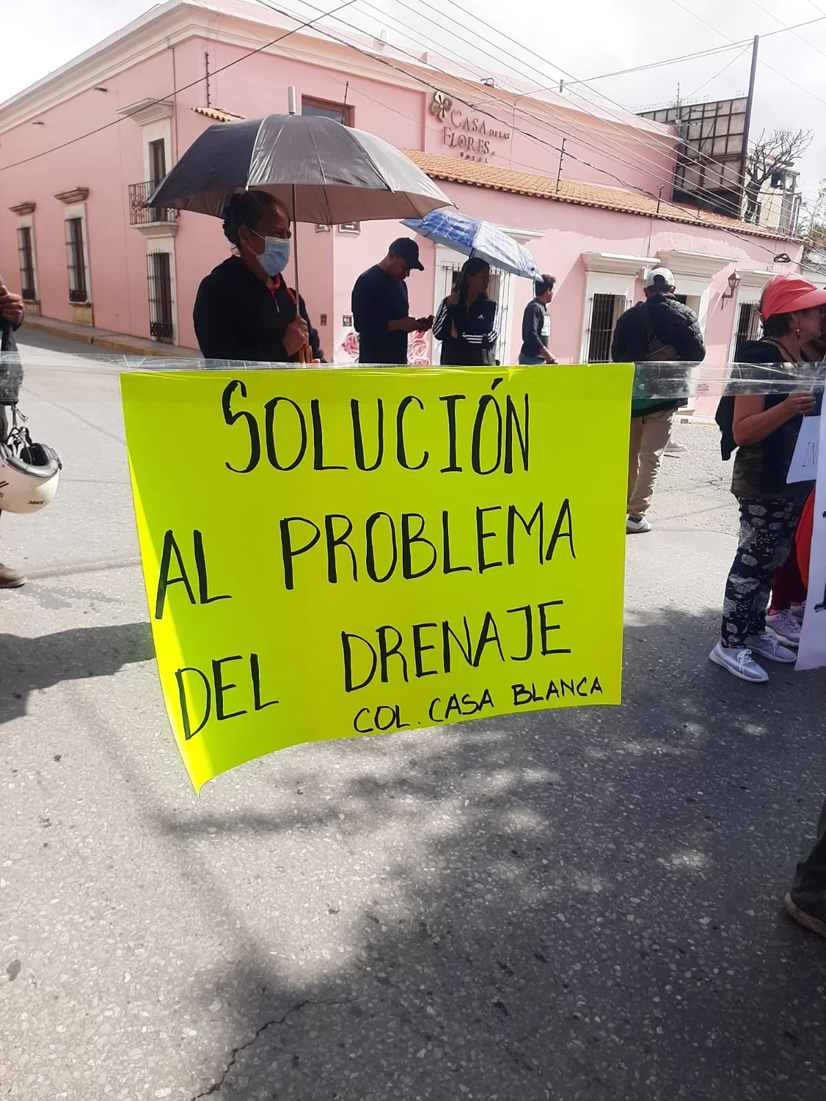Vecinos de la colonia Casa Blanca bloquearon esta mañana la calle Manuel Sabino Crespo, a la altura del asilo “Los Tamayo”, así como la Panorámica del Fortín, en protesta por los problemas de drenaje que, aseguran, llevan tiempo sin resolverse.