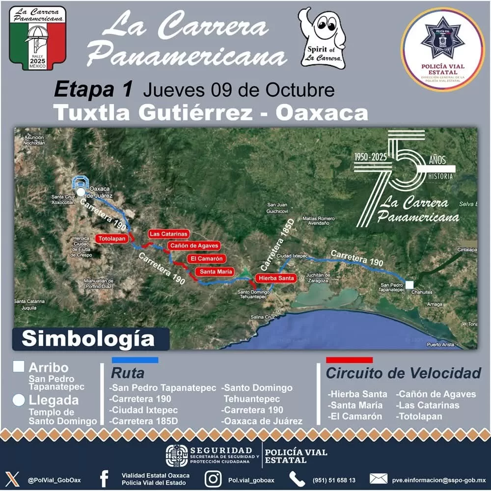 En su edición número 38, la emblemática competencia automovilística arribará a Oaxaca este jueves 9 de octubre por la carretera 190, que ingresará por San Pedro Tapanatepec, en el Istmo de Tehuantepec; donde la Policía Vial Estatal implementará un operativo especial para salvaguardar la integridad de las personas competidoras, organizadoras y espectadoras.