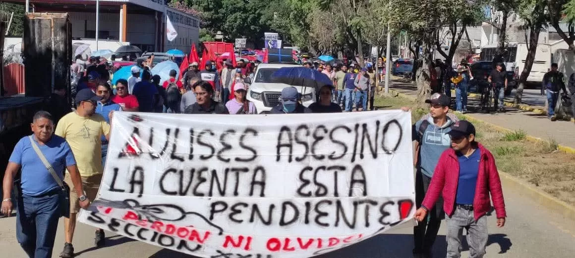 “Ulises Ruiz Ortiz no puede representar al pueblo y menos presentarse en la Ciudad de la Resistencia cuando fue él quien reprimió, robó y asesinó a maestros en 2006”, señalaron los manifestantes en un pronunciamiento público.