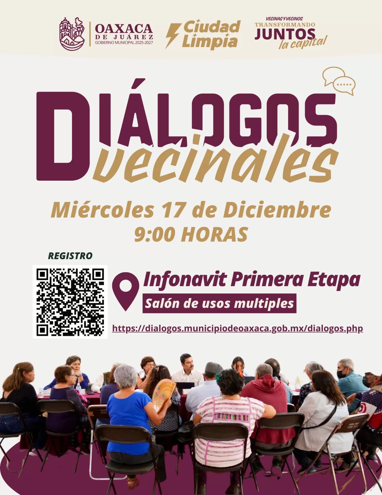 Oaxaca de Juárez, Oax., 16 de diciembre de 2025.– Con el objetivo de fortalecer la comunicación directa y cercana con las vecinas y vecinos, el Ayuntamiento de Oaxaca de Juárez invita a la ciudadanía a participar en una nueva jornada de Diálogos Vecinales, un ejercicio de escucha activa que permite construir soluciones desde el territorio.