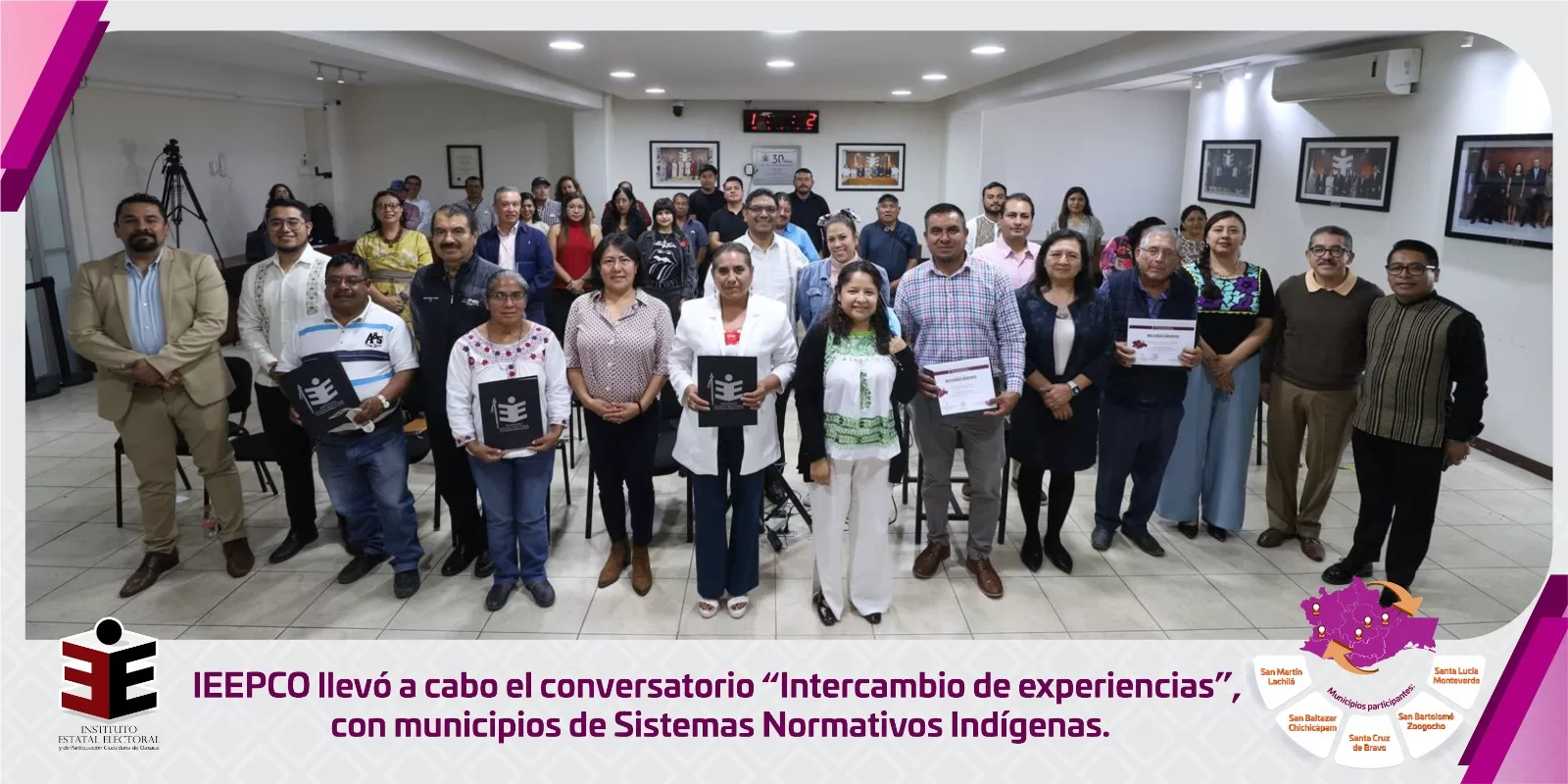 En el marco del Día Internacional de las Personas Migrantes, la Comisión Permanente de Atención de las Personas Residentes en el Extranjero Originarias del Estado de Oaxaca del Instituto Estatal Electoral y de Participación Ciudadana de Oaxaca (IEEPCO), presidida por la consejera electoral Zaira Alhelí Hipólito López, llevó a cabo el conversatorio “Intercambio de experiencias”, con la participación de cinco municipios regidos por Sistemas Normativos Indígenas que han incorporado mecanismos formales para la participación de personas migrantes en sus asambleas de elección.