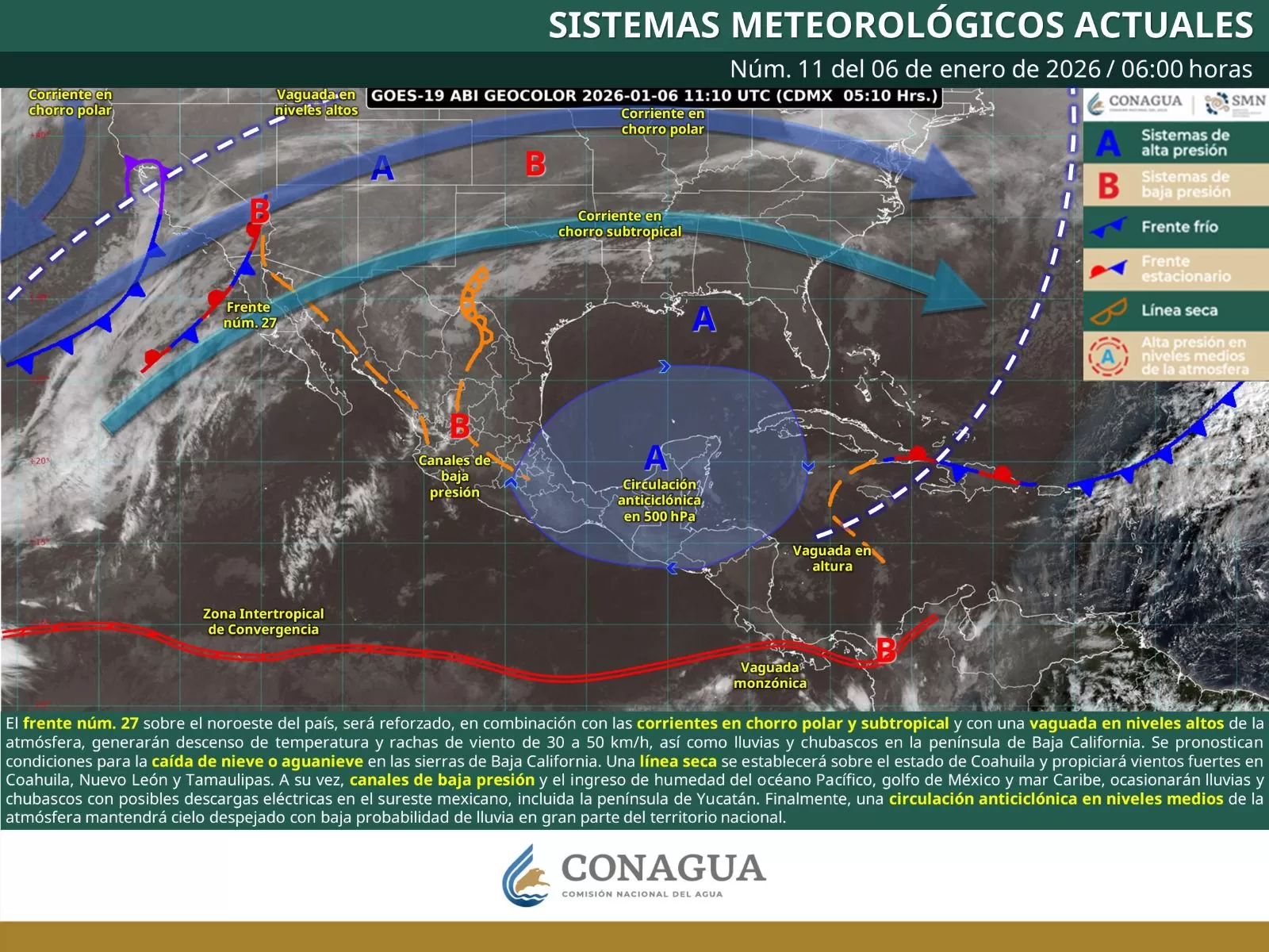 Oaxaca de Juárez, Oax. 6 de enero de 2026.- La Coordinación Estatal de Protección Civil y Gestión de Riesgos (CEPCyGR) informa que una circulación anticiclónica situada sobre el sur del Golfo de México continuará ejerciendo influencia directa sobre el estado, favoreciendo el predominio de cielo despejado e intensa radiación solar durante las horas centrales del día.