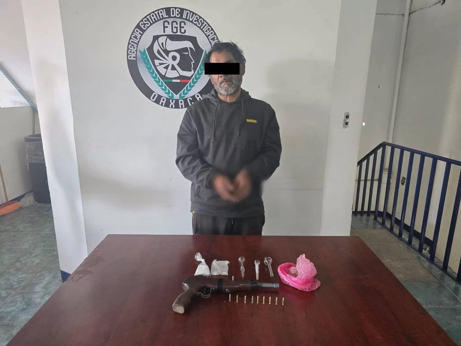 Derivado de estos hechos, los agentes ministeriales aplicaron los protocolos de seguridad para someter al individuo y controlar la situación, al realizar una revisión legal aseguraron droga sintética conocida como cristal, por lo que fue detenido y puesto a disposición de la Vicefiscalía Regional de Valles Centrales para su certificación y proceso legal correspondiente.