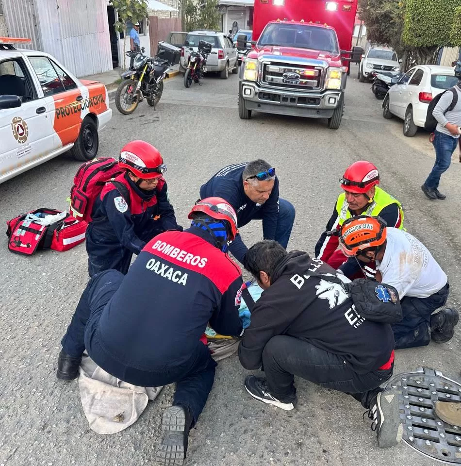 Oaxaca de Juárez, Oax. 23 de enero de 2026.- Elementos del Heroico Cuerpo de Bomberos de Oaxaca (HCBO) rescataron con vida a una persona atrapada en el interior de una alcantarilla de la colonia Manuel Sabino Crespo, ubicada en la capital del estado.