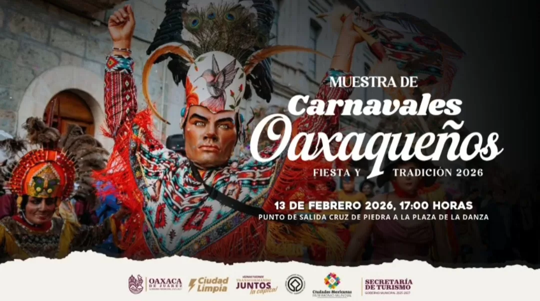Oaxaca de Juárez, Oax. 9 de febrero.- Todo se encuentra listo para que Oaxaca de Juárez viva la Muestra de Carnavales Oaxaqueños 2026, una celebración que llenará de música, color y alegría las calles del Centro Histórico el próximo 13 de febrero, a partir de las 17:00 horas.