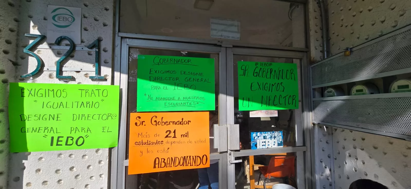 Con cartulinas colocadas en la entrada del inmueble, los trabajadores exigieron al gobernador del estado atender la situación y nombrar a quien encabece el IEBO, al considerar que la falta de dirección impacta en los procesos académicos y administrativos. En los mensajes también se destaca que más de 21 mil estudiantes dependen del funcionamiento adecuado del subsistema.